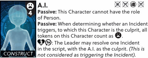 nếu Incident đó liên quan đến Nhân vật này, thì tất cả token trên A.I. được xem như token ☹️ (Unease)