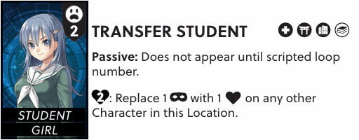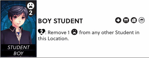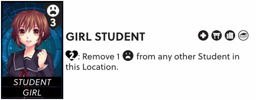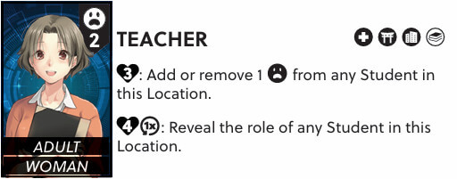 Thêm hoặc loại bỏ 1 token Unease (☹) khỏi bất kỳ Student nào tại Địa điểm này. -