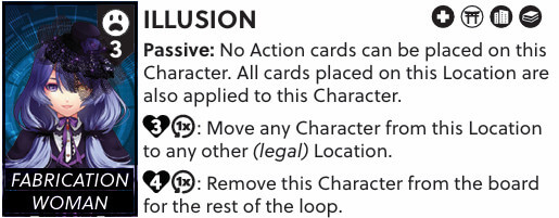 Mọi Action card được đặt lên Địa điểm mà Illusion đang đứng