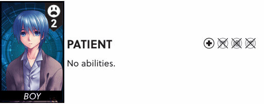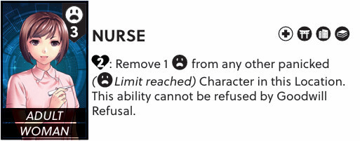 Loại bỏ 1 token Unease (☹️) khỏi một Nhân vật khác đang hoảng loạn (tức là đã chạm hoặc vượt Giới hạn Unease) tại cùng Địa điểm này.Năng lực này không thể bị từ chối bởi Goodwill Refusal.